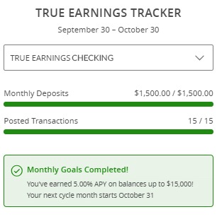 1For True Earnings Checking accounts, you may qualify for a higher annual percentage yield if you meet the applicable minimum eligibility requirements for the Cycle Month.