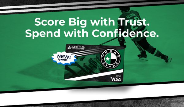 You’re already part of the Stars family when you use this card. The Texas Stars debit card is available with a True Checking or True Earnings Checking account. Already have a debit card with us? Give us a call or send us a secure message in digital banking to switch.